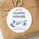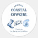 Préparez-vous à célébrer la mariée à venir avec notre Bachelorette Coastal Cowgirl classique autocollant rond! Le charme de l'océan répond à l'esprit de l'ouest sauvage avec des motifs côtiers et occidentaux. Parfait pour un thème tropical Beach Ocean ou un bash Western Girl Dernier Rodeo. Qu'elle soit une fille côtière ou qu'elle aime les Vibes côtières bleues, cet autocollant de remerciement a tout. Doté de Bottes et de motifs de coquillages Blue Western, il est idéal pour toute fête de plaisir esthétique bleue. De la Nouvelle-Orléans à Nashville, Miami à Charleston, en passant par le Texas et le Tennessee, cet autocollant rond classique capture l'essence du plaisir et de l'aventure. Faites de sa dernière course une expérience inoubliable avec cet autocollant unique et dynamique!