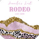 Design moderne et scintillant pour fête de Bachelorette avec paillettes roses et dorées, motif imprimé vache et typographie élégante. Cet article fait partie de la collection " YEE HAW! " où vous pouvez trouver de nombreuses fournitures de fête pour votre thème de fête disco cowgirl.