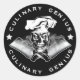 Montrez votre fierté de chef de tueur avec cette conception orientée culinaire unique de chef de crâne, comportant un cool et chic métallique-comme le crâne utilisant son casquette de chefs. Deux fendoirs de tabagisme croisés remplacent ses os croisés traditionnels. Le génie culinaire de titre est arqué le long du dessus et du bas de ce produit, en texte audacieux d'écriture moulée, sûr de faire chacun savoir que vous êtes un chef professionnel de stature élevée, et tout au sujet de la cuisine pratique. Cette image numérique indispensable de crâne de chef a été créée pour des chefs, des cuisiniers, des propriétaires de restaurant, et n'importe qui avec une passion féroce pour la nourriture et la saveur. Et crânes. Visitez www.zazzle.com/thechefshoppe pour voir plus de crânes frais de chef de cuisine conçus par sdesiata.