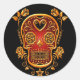 Sticker Rond Crâne à sucre avec Roses, jaune et rouge