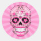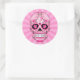 Le crâne de sucre Day of the Dead présente un grand diamant au milieu du front. Cinq étoiles pointes apparaissent au milieu des yeux noirs qui sont entourés de simples pédales de fleurs. Des toiles d'araignée décorent les deux côtés du crâne avec des lignes tourbillonnantes apparaissant dans tout le motif. Des rayons de lumière épais s'étendent dans toutes les directions émanant de derrière le crâne. Ce crâne à sucre traditionnel est un beau et élégant Jour des morts motif.