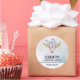 Bougie / Savons autocollants avec un arrière - plan d'aquarelle turquoise et pastel. Un crâne animal chic boho avec un bouquet floral sur la tête et des petits papillons qui fleurissent. Une jolie bordure décorative aux petites teardrop en bleu clair.