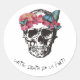 Sticker Rond Crâne avec Hydrangea et Papillons