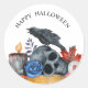 Sticker Rond Crâne de corbeau d'Halloween aquarelle du globe oc