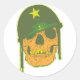 Un dessin méchant d'un crâne dans un casque traditionnel de l'armée.