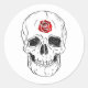 Sticker Rond Crâne de squelette os noirs et roses rouges paille