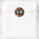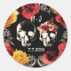 Sticker Rond Crâne de squelette rouge jaune automne floral mari