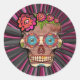 Sticker Rond Crâne de sucre en bois sculpté avec couronne fleur