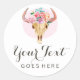 Sticker Rond Crâne de vache bohème rustique aquarelle florale r