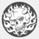 Sticker Rond Crâne démon en flammes