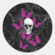 Sticker Rond crâne d'Imaginaire et papillons roses chauds