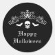 Sticker Rond Crâne et chauves-souris heureux Halloween noir et