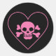 Un crâne rose et des os croisés à l'intérieur d'un coeur noir. Parfait pour une Saint Valentin gothique ou pirate.