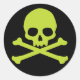 Ces tee - shirts graphiques et d'autres objets sont ornés d'un simple crâne et d'os croisés dans une couleur verte et noire empoisonnée. Bon pour les thèmes gothique, Halloween et pirate.