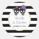 Sticker Rond Crânes et rayures violet mariage d'Halloween