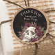 Autocollants de remerciement personnalisés ou sceaux d'enveloppe pour fête ou occasion avec un thème gothique de crânes et de roses. Le design présente un crâne à l'aquarelle et des roses marron burgundy sur un fond noir grunge. Idéal pour la fête des morts, Dia De Los Muertos, Halloween, anniversaires et plus encore. ASSISTANCE : Pour obtenir de l'aide concernant la modification ou la personnalisation du design, le changement de couleur, le transfert du design sur un autre produit ou si vous souhaitez des articles coordonnés, contactez le designer AVANT DE COMMANDER via l'onglet MESSAGE de discussion Zazzle ci-dessous ou par courriel à makeitaboutyoustore@gmail.com.