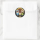 Sticker Rond Crèche de Noël mignonne avec paillettes dorées