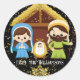 Sticker Rond Crèche de Noël mignonne avec pailleurs dorés