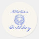 Sticker Rond Crème Bleue 30ème Main Drawn Cake Anniversaire