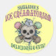 Faux faux logo de l'entreprise spoof pour "Skullabee's Ice Creamatorium - Délicieusement mal!" Texte fantaisie avec un crâne et des cônes croisés portant un casquette en papier. Lourdement affligé, pour ce look de salon de crème glacée maléfique des années 50, sur t-shirts, nouveautés & cadeaux.