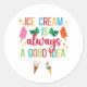 Stickers Rond Social De Crème De Glace. La crème glacée est toujours une bonne idée. Invitation vos amis ou voisins pour une soirée amusante de crème glacée.