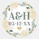 Sticker Rond Crème Or Floral Verdure Coeur Mariage Monogramme