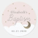 Sticker Rond Crescent Lune & Étoiles Fille Rose Baptême