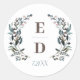 Sticker Rond Crest jardin | Blanc Bleu Mariage Monogramme Date