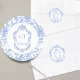 Sticker Rond Crest Monogram Delft Blue Floral Wedding