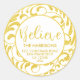 Un joli Sticker rond d'adresse de Noël avec un script d'or Faux Parties scintillant "Believe" sur un design élégant ornament. Une belle façon d'inspirer vos proches cette saison des Fêtes. Vous pouvez modifier le texte à partir du menu Personnaliser, ainsi que les polices et la couleur à partir de Customiser plus loin. Design original par SunFreeStar.