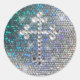 Faux scintillement en pierre de taille en pierre de diamant image imprimée d'une croix, avec un arrière - plan de faux argenté imprimé avec motif en cercle bleu étincelant. Une rue design et un look urbain un peu inspiré. Les parties scintillant bleues et argentées ont l'air d'une image graphique imprimée à plat. Tous les Designs Copyright © 2012 www.CuteComfy.com