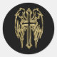 Sticker Rond Croix catholique d'or avec ailes