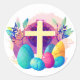 Croix de Pâques chrétiennes, ce magnifique design présente une Croix de Pâques chrétiennes avec des fleurs colorées et des oeufs de Pâques.