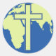 Un globe terrestre avec un symbole de croix chrétienne au sommet.