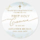 Sticker Rond Croix d'or bleu garçon Première communion sainte