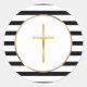 Autocollant simple à rayures noires et blanches avec une croix dorée et une bordure élégante en faux or. Parfait pour toute occasion religieuse chrétienne. Conçu par Thisisnotme©