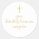 Sticker Rond Croix dorée simple Message Première Sainte Communi