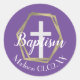 Sticker Rond Croix du Baptême minimaliste d'or Nom de l'enfant