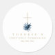 Sticker Rond Croix Flore Bleue Simple Première Communion Sainte