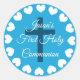 Croix Bleue les premiers autocollants de communion sainte du garçon. stickers ronds élégants avec symbole coeur d'amour et modèle de typographie de script élégant. Parti personnalisé en faveur des chasseurs de phoques pour la foi chrétienne. Ajoutez votre propre nom. Utilisez ce design pour la 1ère communion sainte de bébé garçon ou fille, baptême, baptême, baptême, confirmation, etc. Symbole christianisme moderne pour Jésus Christ / Dieu. Phoques d'enveloppe personnalisée pour enfants, fils, petit-fils, amis, famille, pasteur d'église, prêtre, catholique, baptiste, luthérien, évangélique, méthodiste protestante et autres religions.