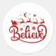Croyez Sticker rond classique Père Noël Sleigh Reinder de Noël