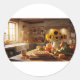 Une belle image photoréaliste d'une cuisine rustique en automne. La scène est ornée d'une tarte aux pommes fraîchement cuite, entourée de citrouilles et de tournesols, avec une lumière chaude qui illumine l'espace. Ce design saisit parfaitement une atmosphère accueillante et accueillante, pleine de chaleur et de confort de l'automne.