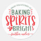 Étiquette de cuisine de vacances dans un design moderne rouge et vert rétro avec police calligraphie élégante, espace pour la ligne de cuisson "de la cuisine de, nom du boulanger et Baking Spirits Bright . Utilisez ces autocollants de boulangerie pour votre entreprise de boulangerie maison, de pâtisserie de vacances ou d'échange de biscuits.