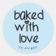 NewParkLane - Sticker avec citation 'Baked with Love' dans une jolie typographie lettrée à la main, contre un arrière - plan bleu. La lettre est en forme de coeur. Ajoutez votre propre nom ou autre texte dans les modèles de texte faciles à utiliser, pour un design personnalisé et choisissez la couleur arrière - plan de votre goût. Un design parfait pour emballer vos articles de votre boutique en ligne ou de votre petite entreprise. Consultez cette collection pour les articles correspondants. Avez-vous des souhaits particuliers en matière de design personnel? N'hésitez pas à me contacter !