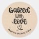 Cute cuite au four avec l'amour personnalisé produits faits maison autocollants sont une façon mignonne d'ajouter votre nom à vos cadeaux de pâtisseries.