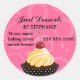 © 2015 Socialite Designs. Cupcake avec glaçage tourbillon à la vanille, cerise sur le dessus et arrière - plan de bulle rose design autocollant. Ce sceau de boulangerie de cupcake correspond à nos cartes de visite de boulangerie de cupcake.