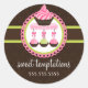 © 2012 Socialite Designs. Le cupcake de Whimsical sur un stand et trois pops de gâteau à l'intérieur d'un cercle de dentelle design autocollant. L'arrière - plan a un motif chocolat et cacao damassé. Un carte de visite idéal pour une entreprise de boulangerie ou de restauration événementielle comme les tables de desserts. Personnalisez cette boîte de boulangerie scelle avec vos informations.