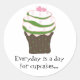Cute cupcake rose et vert gelé avec une doublure en chocolat. deux petits coeurs roses sur le dessus. Un dicton amusant : "Chaque jour est une journée pour les cupcakes."