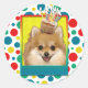 Célébrez un anniversaire avec cette carte de voeux fantaisiste pour chien de Poméranie. Avec un cupcake équilibré sur sa tête, ce design ne manquera pas d'apporter un sourire et des rires ! BTW, Cette conception a plusieurs versions, avec différentes couleurs arrière - plans. Il y a aussi une invitation à une version Party.