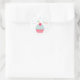 Un autocollant mignon pour les enveloppes ou les sacs de faveur de la fête comporte un cupcake rose et bleu avec une cerise sur le dessus et le coeur et confetti point.